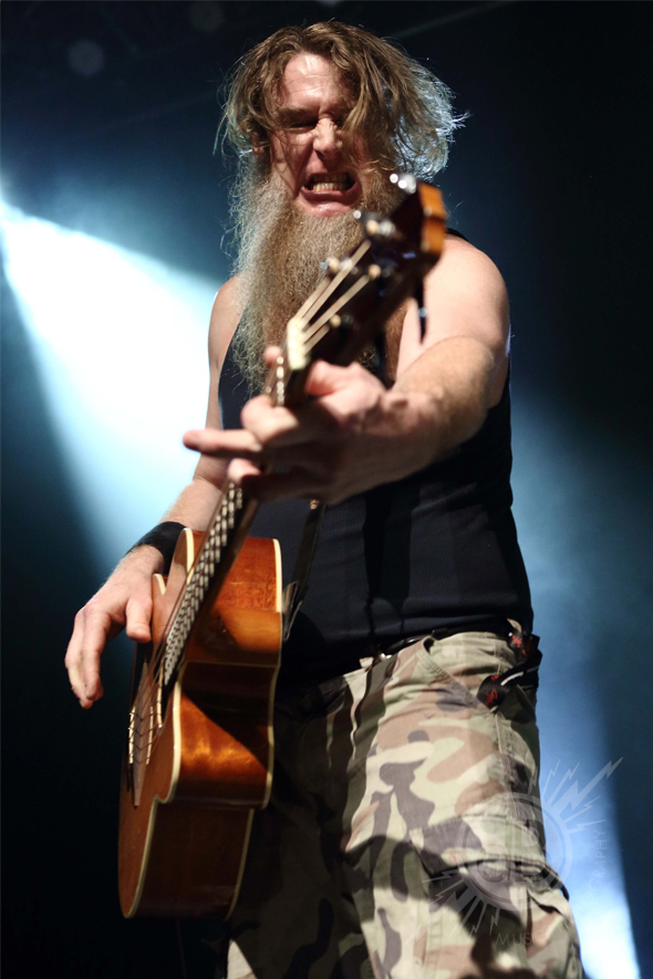 own instruments until they walked off after a fabulous 15 minute encore to go drink with the audience, John and the boys treated the packed 1,300 fans to a mixture of old and new material, covers and original work. Since the band are touring their new album Hair Down To My Grass, a number of songs from that release featured and included fantastic Rockgrass versions of Journey’s Don’t Stop Believing, Survivor’s Eye of the Tiger, Europe’s The Final Countdown, Twisted Sister’s We’re Not Gonna Take It and Def Leppard’s Pour Some Sugar on Me.